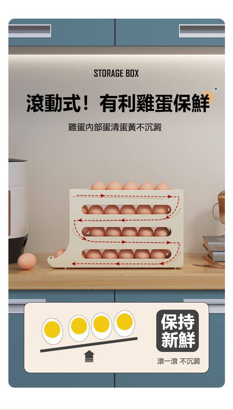 5分鐘前自動滾蛋式雞蛋收納盒 - 3入组(可放90個雞蛋)NT$1098