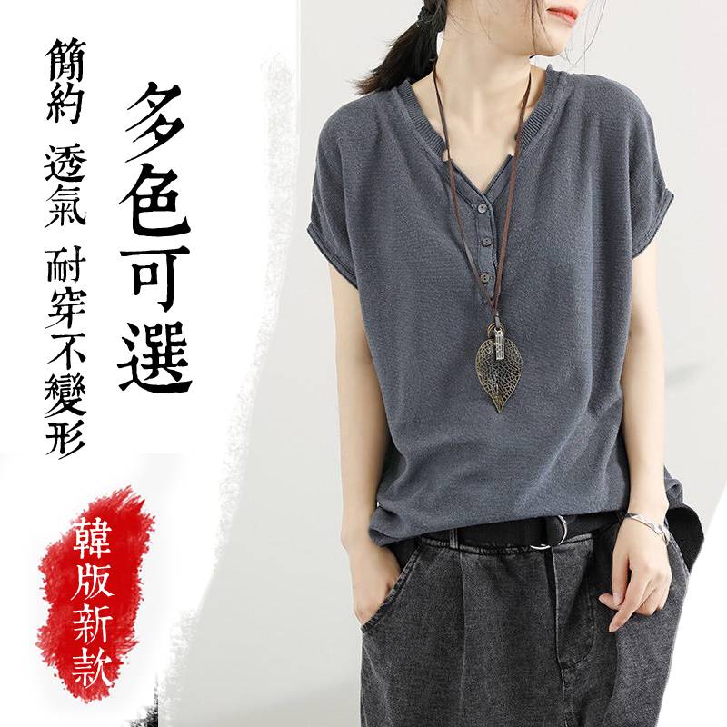 【夏季熱銷款】冰絲薄款V領短袖【超薄透氣】【舒適百搭】【促銷活動還在進行中哦!】